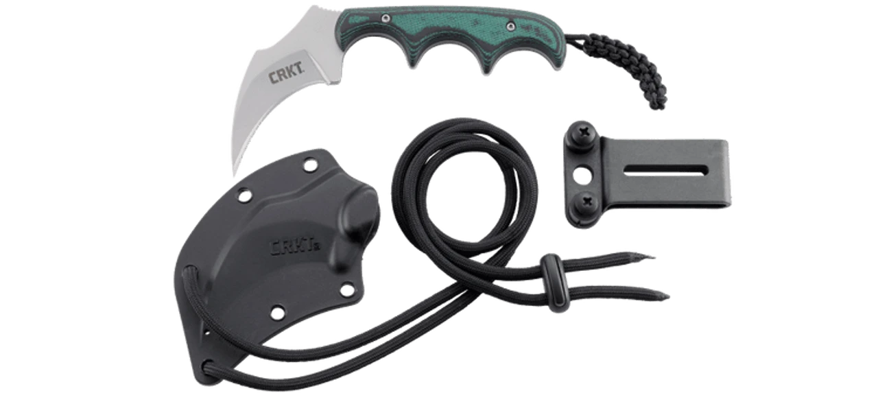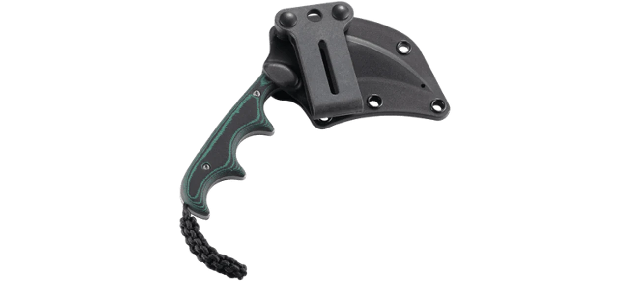These compact fixed blade neck knives with tough handles come in a variety of different blade styles. In the woods or around the house they feel equally at home.