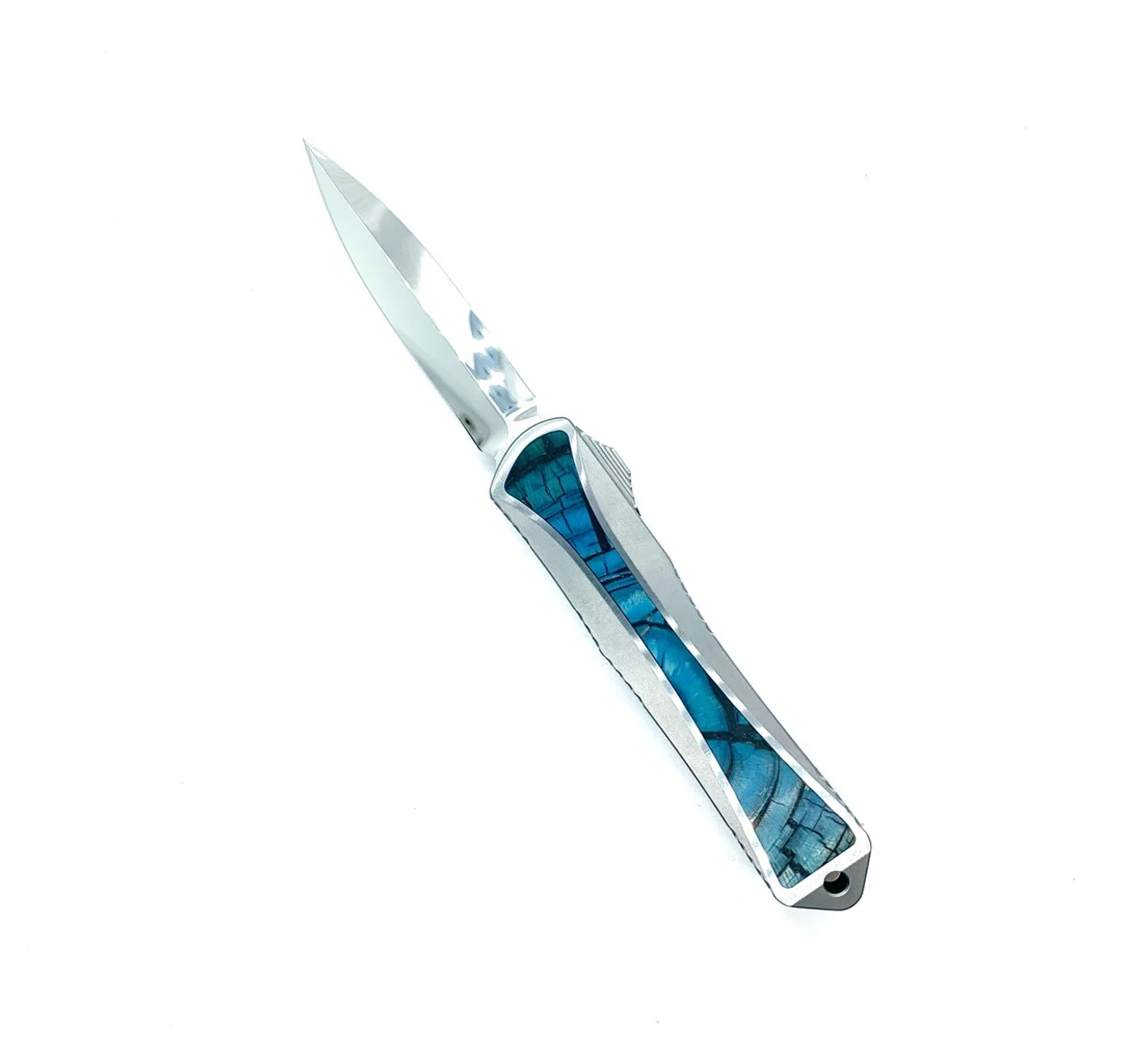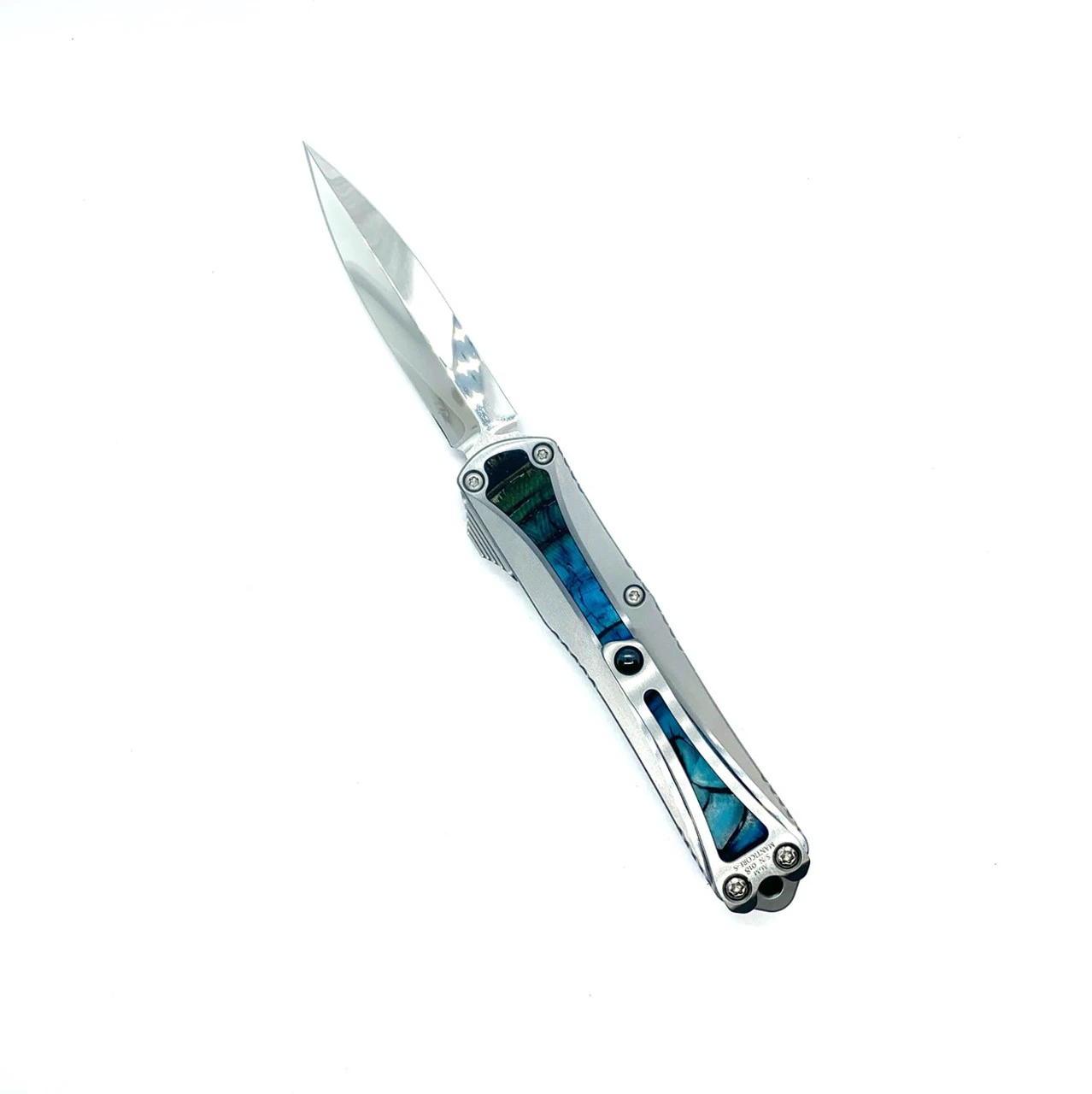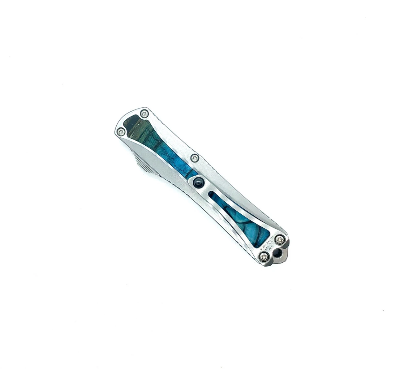 Stainless Steel Handle w/ Mammoth Ivory Inlay, Hand Ground DE Mirror Polish, Satin Titanium Clip, SS Button