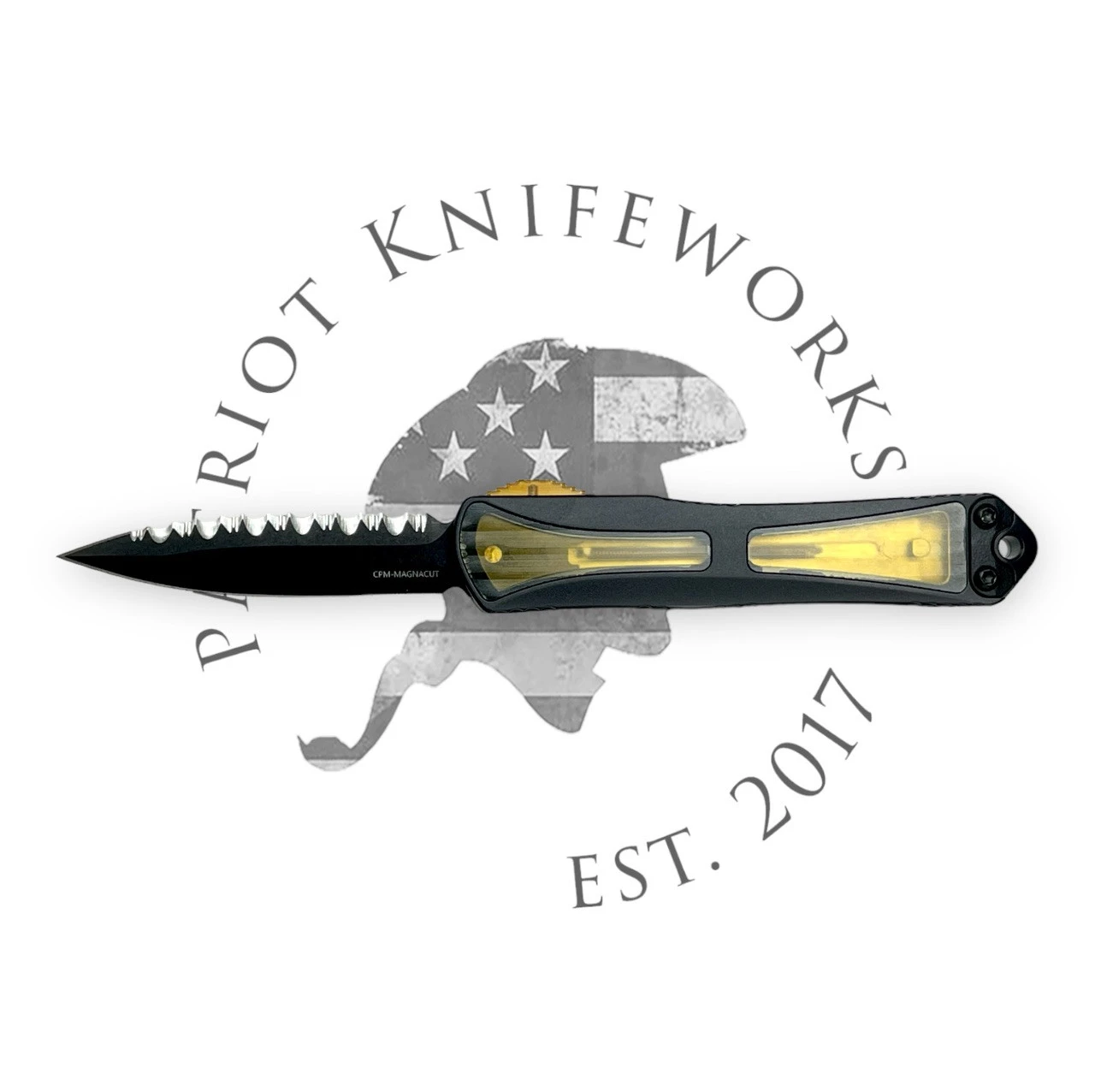 Offering the same features of the larger cohorts in the Manticore series, the Manticore S is the smallest in the Manticore lineup. A double action out-the-front, the blade can be deployed and retracted with one hand. The knife’s smooth action starts with a stepped thumb slide so you can fire the blade with confidence. Elegant sweeping lines and jimping down the length of the handle add depth to an otherwise smooth body. A hardened steel glass breaker rounds out the handle.