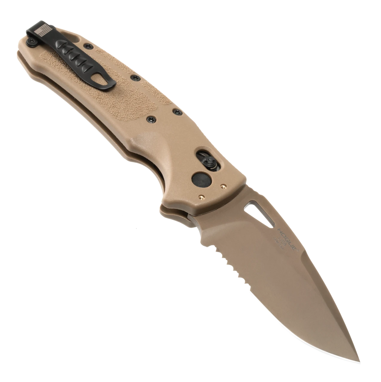 • Style: Drop Point with Partial Serrations and Ambidextrous Deployment Window