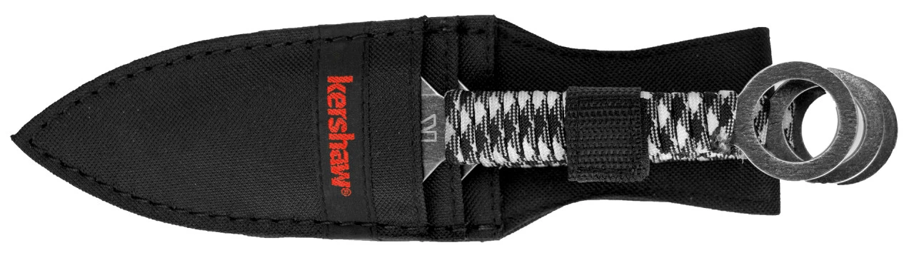You canât throw just any knife. You need specially designed throwing knives. The Kershaw Ion set has the correct weight and balance for successful target throwing. Kershawâs Ion knives are double-edged, spear-point blades. We made these full-tang knives from sturdy, high-chromium stainless steel and wrapped the handles in durable, sure-grip paracord. The extra-wide ring at the end adds balance, offers a great place to attach a lanyard, and makes it easy to remove the knives from the sheathâor from the target.