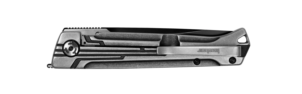 The Noventa’s stylish design takes inspiration from the Art Deco period. Aesthetically, it features a two-tone blade, standout handle texturing, and a custom pivot. Sleeker still, the hidden flipper creates an uninterrupted profile that’s still easy to open and operate. Even the deep-carry reversible pocket clip doesn’t have visible screws. They’re hidden in the backspacer for a clean look. The Noventa also takes advantage of D2 tool steel for a long-lasting edge and opens smoothly with KVT ball bearing washers. With an eye-catching and sharp design, the Noventa is the ideal everyday carry.