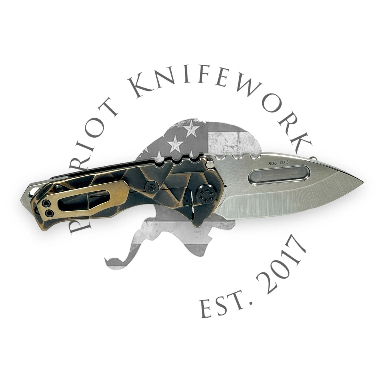 Medford Prae Slim S45VN Tumbled Tanto Blue American Flag Handles, Bronze HW, STD Clip