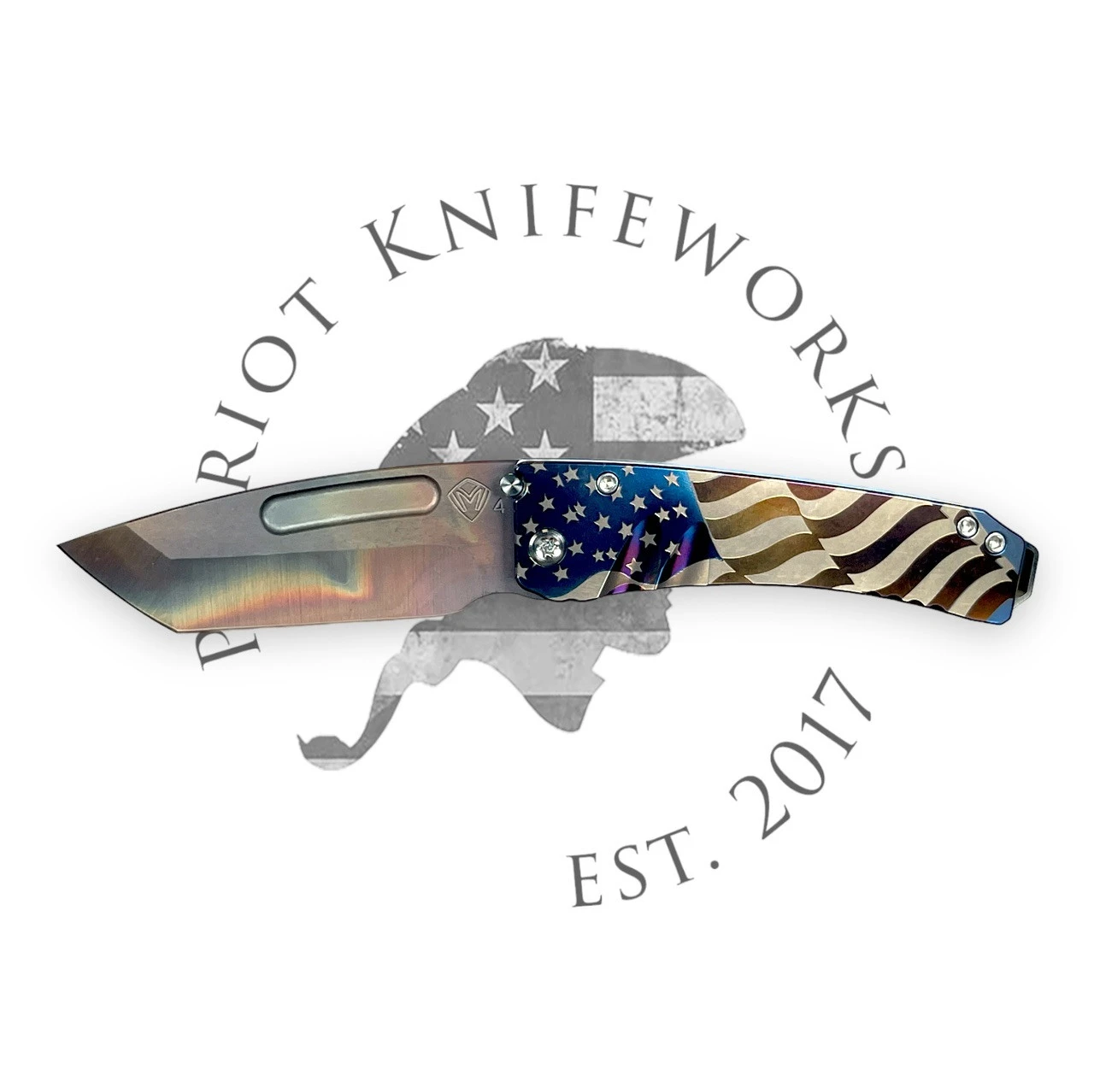 MEDFORD GENTLEMAN JACK 2 S45VN TUMBLED BLADE, BLUE AMERICAN FLAG HANDLES, BRONZE HARDWARE