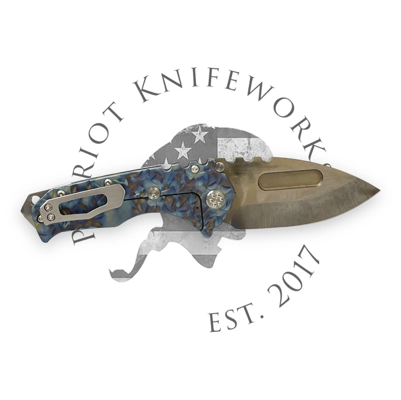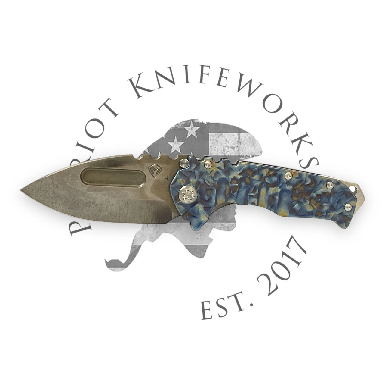 MEDFORD GENTLEMAN JACK 2 S45VN TUMBLED BLADE, BLUE AMERICAN FLAG HANDLES, BRONZE HARDWARE