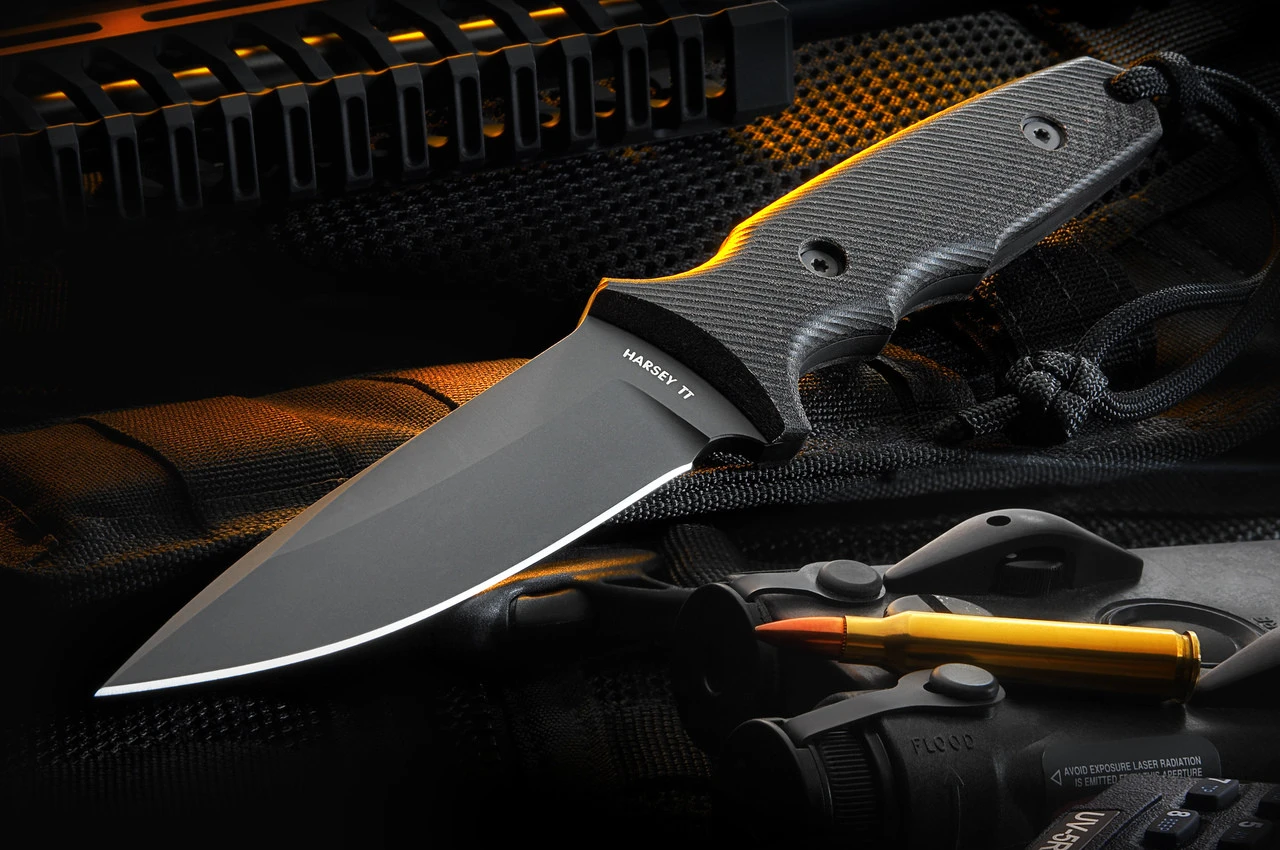 Spartan Harsey TT – The Harsey TT (Tactical Trout) was designed to be a very comfortable and robust mid-sized knife for most field tasks and defensive use. The TT’s size makes it easy to carry and wield. The spear point profile has a flat ground main bevel with a tapered top grind. The blade profile provides for a clean cutting edge with excellent tip strength. The Harsey TT’s full tang and handle provide for neutral balance in the user’s hand. The contoured ergonomic linen Micarta handle provides for a comfortable confident grip when wet or dry. The pommel has a lanyard hole in the middle of its angled tip. A great all around fixed blade, the TT is well balanced in its size, function and feel. One of William Harsey’s best designs in our opinion.Â