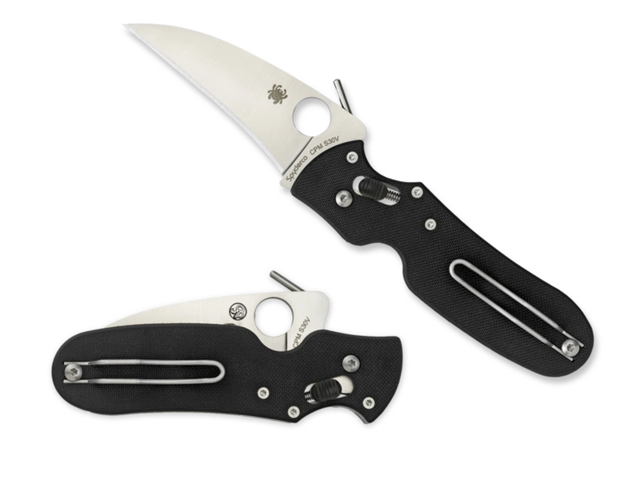 As a “reverse-edge” tool, the P’Kal’s handle is ergonomically designed to be held with the sharpened edge facing inward toward the user to facilitate powerful pulling cuts. The handle’s skeletonized full stainless steel liners are capped by textured black G-10 laminate scales and house Spyderco’s patented Ball Bearing Lock™—an extremely strong lock mechanism that is also completely ambidextrous. To support all appropriate carry and deployment methods, the P’Kal also features a reversible steel wire clip that provides tip-up, edge-forward and edge-back carry on both the left and right sides.