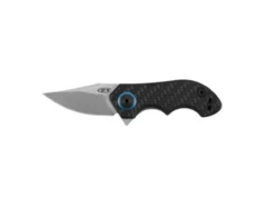 - Carbon fiber front scale, titanium back with frame lock for secure blade lockup during use