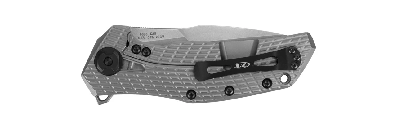 - CPM 20CV blade steel offers exceptional hardness, wear resistance, edge retention; stonewashed finish helps hide use scratches