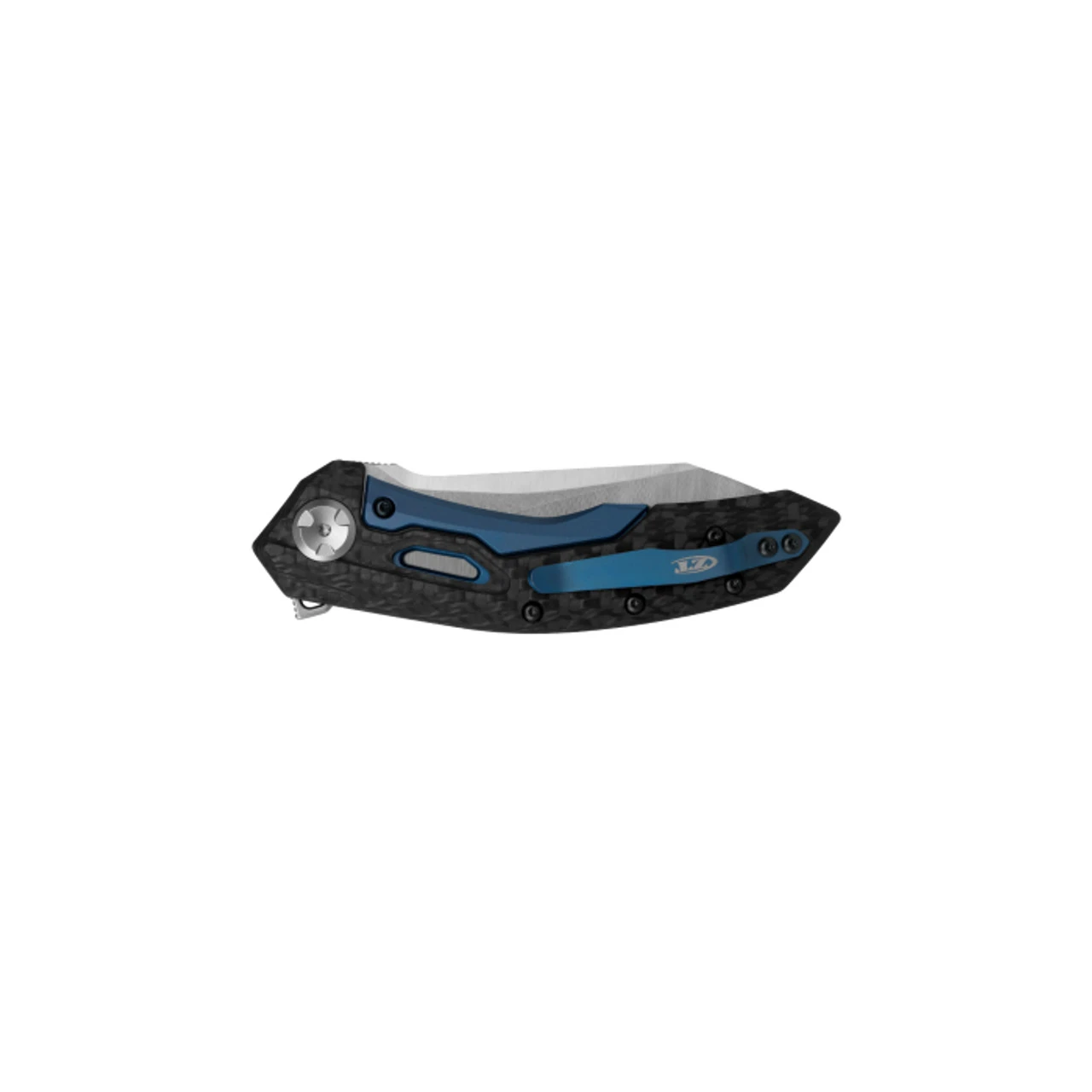 Packed with innovation, the 0762 delivers a top-of-the-line ZT experience. Its reverse tanto blade and carbon fiber handle scales offer the ultimate medium-size ZT carry. Open the 0762 reliably with the ZT Tuned Detent System (TDS™), allowing the blade to deploy even with pressure on the lockbar. The ZT Sub-Frame Lock secures the blade into place without sacrificing the lightweight benefit of carbon fiber. A two-tone CPM 20CV blade is pleasing to the eye and just as useful during work tasks. The 0762 stands out with an array of aesthetic details, including matching blue-anodized hardware and sleek handle windows, creating a ZT showpiece slicer.
